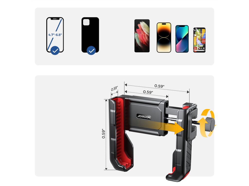 - Kompatibilní s mnoha modely telefonů, vč. iPhone, Samsung nebo Xiaomi. Držák pojme smartphony o velikosti 4,7-7 palců