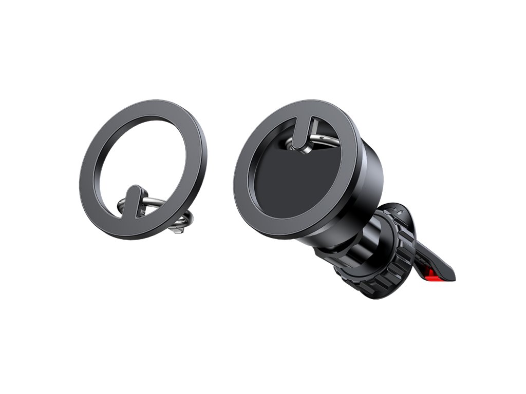 Součástí kitu Joyroom jsou 2 velmi kvalitní držáky du auta. Jeden se uchycuje do ventilační mřížky klimatizace, druhý pak na palubní desku. Pro každého to pravé. Držák je vytvořen pro MagSafe systém, ale pro ještě větší stabilitu má speciální otvor pro zatlačení prstýnku. Tento styl uchycení je velmi jednoduchý a je založen na metodě zatlačení / zacvaknutí.