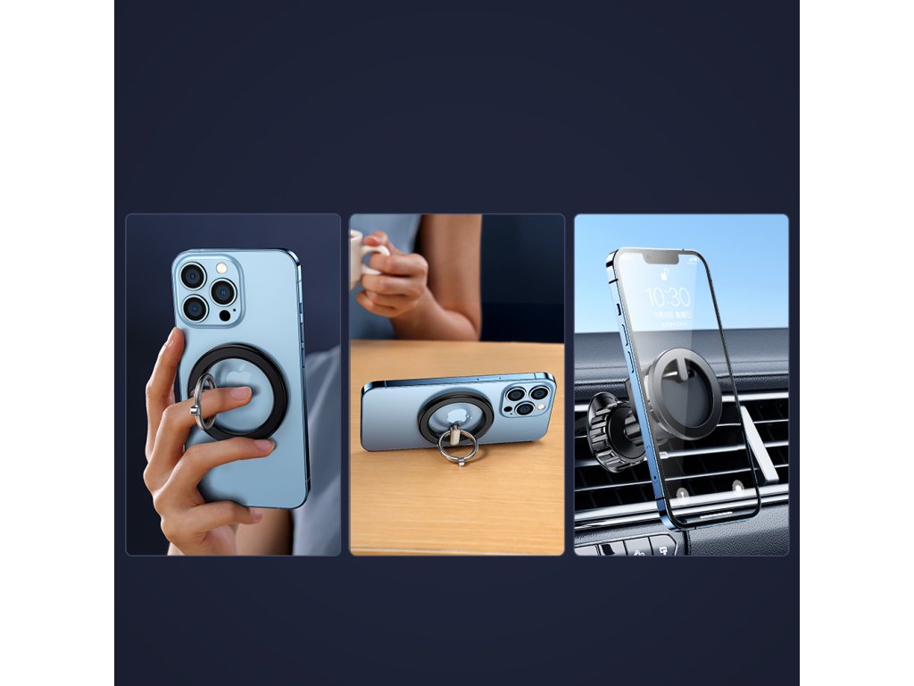 Univerzální magnetický kit 3v1 od renomované značky Joyroom se bude hodit každému uživateli chytrého telefonu. MagSafe stojánek je lehký a kompaktní a umožňuje pohodlné používání zařízení za všech podmínek - v práci, doma i v autě. Můžeme jej použít jako stojánek nebo vložit do držáku v autě. Díky vestavěným magnetům jste schopni telefon používat ve vodorovné i svislé poloze. Stačí jen otočit kroužek o 90 stupňů.