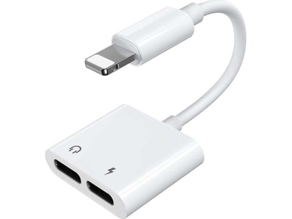 Joyroom S-Y104 – adaptér Lightning na 2× Lightning (audio + nabíjení) – bílý