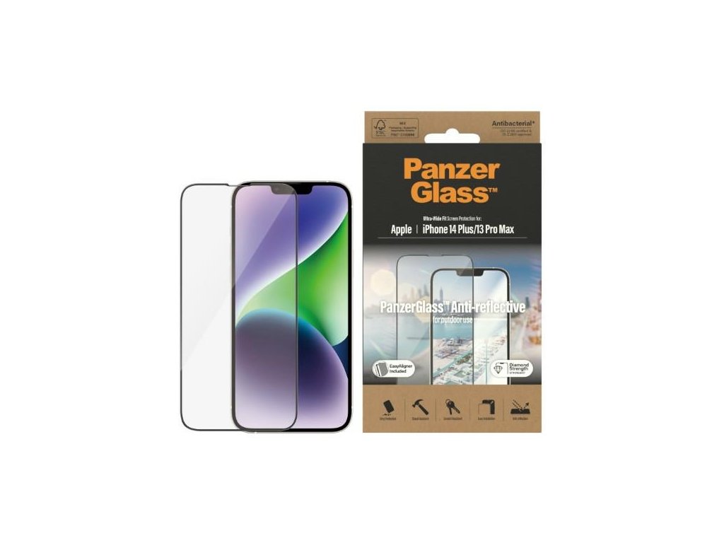 PANZERGLASS Ochranné sklo 2.5D FULL-COVER 0.4mm pro iPhone 13 Pro Max/14 Plus, AntiBacterial, Anti-reflexní, montážní rámeček