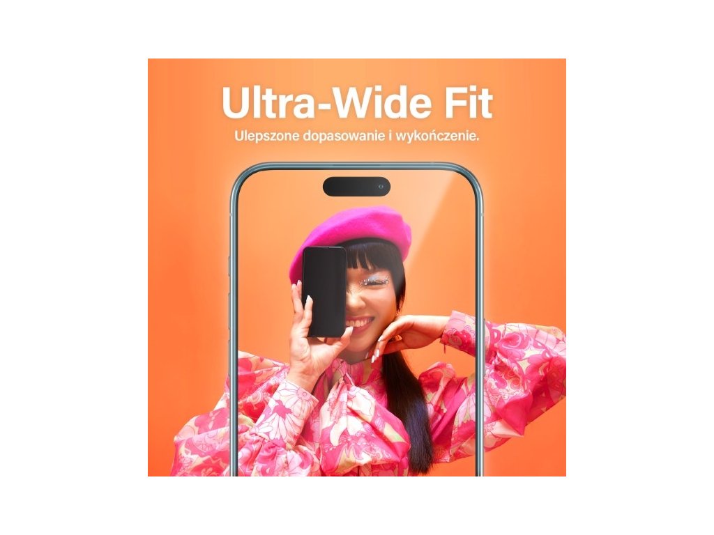 Ochranný kryt obrazovky Ultra-Wide Fit pokrývá celou přední plochu telefonu a zároveň ponechává prostor pro pouzdro. Poskytuje úplný a křišťálově čistý pohled na obrazovku a dodává se v obalu s certifikací FSC, který lze recyklovat.