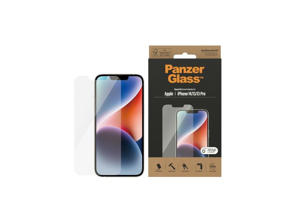 PANZERGLASS Ochranné sklo 2.5D STANDARD 0.4mm pro iPhone 13/13 Pro/14, AntiBacterial, čiré