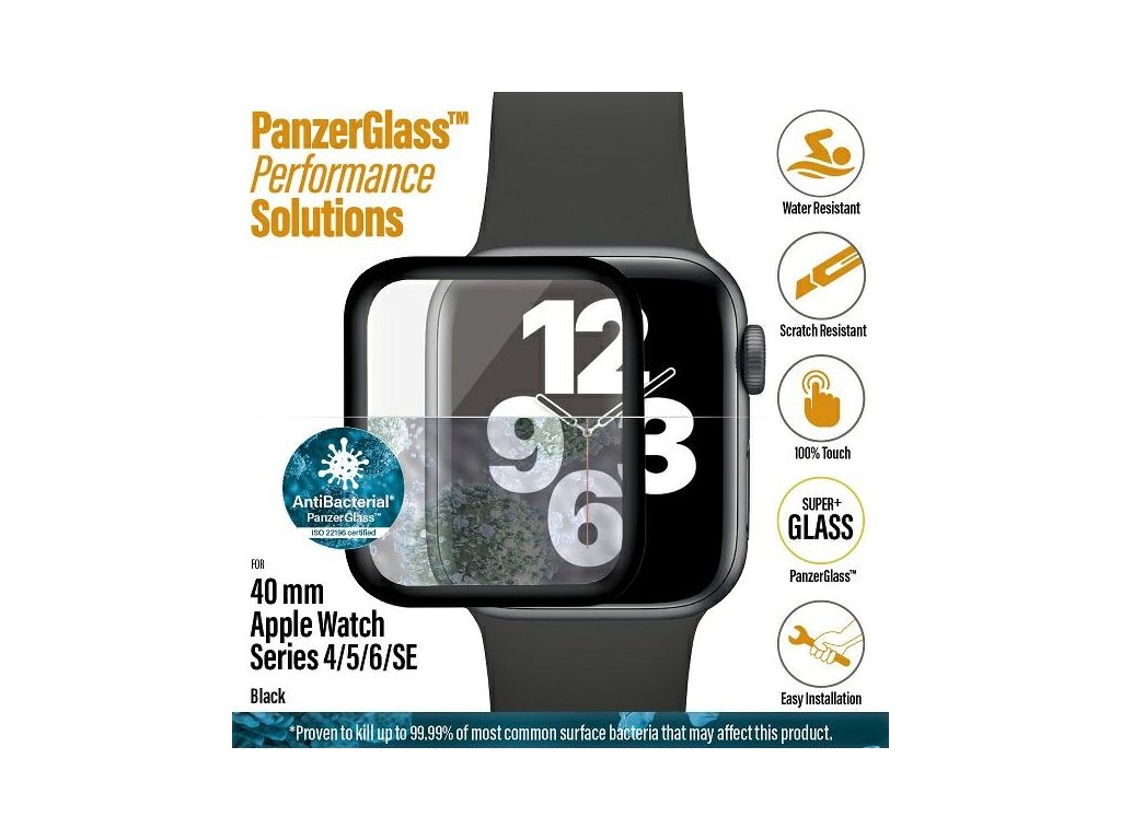 PANZERGLASS Ochranné sklo 3D FULL-COVER 0.4mm pro Watch 4/5/6/SE 40 mm, AntiBacterial