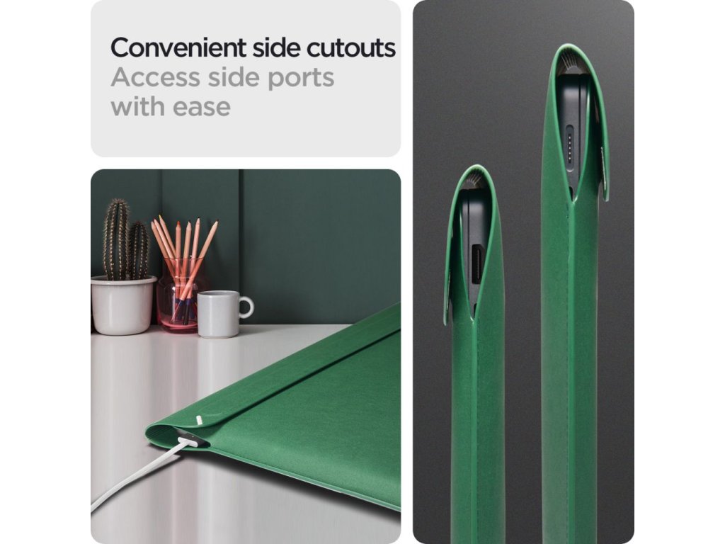 Další výhodou jsou praktické výřezy pro boční porty, které umožňují snadný přístup bez nutnosti vyjmutí notebooku z pouzdra.
