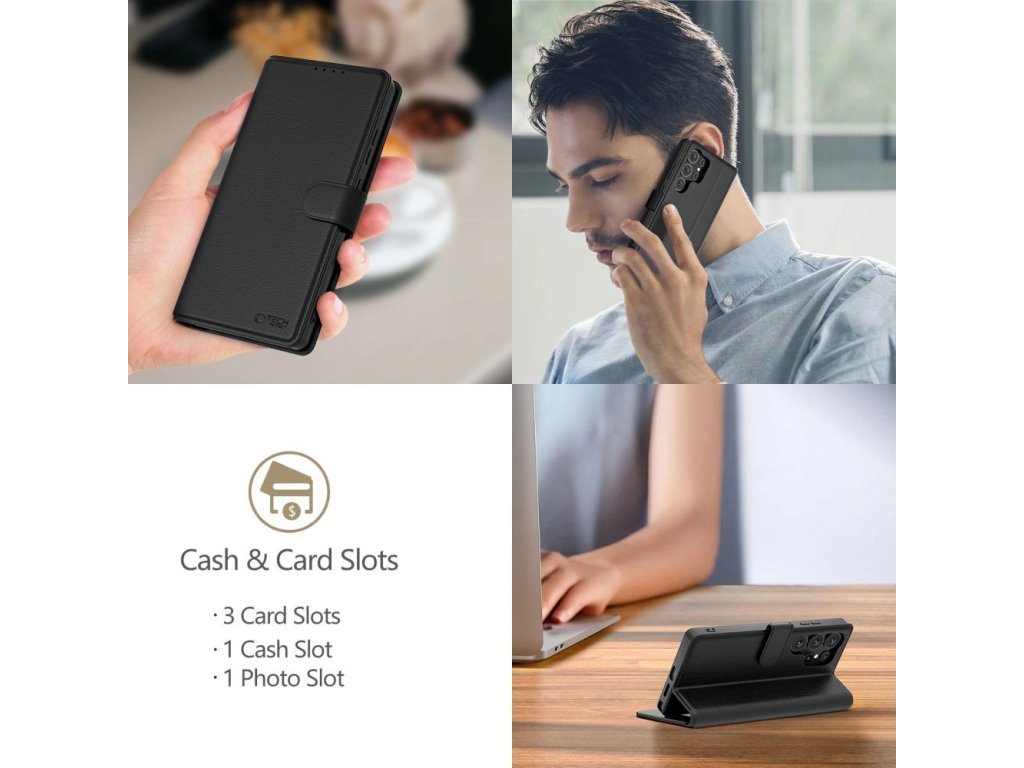 Elegantní peněženkové pouzdro s klopou, které kombinuje styl a ochranu. Vyrobeno z ekologické kůže a pružného TPU, chrání telefon před nárazy a škrábanci a díky vestavěným kapsám nahradí i peněženku.