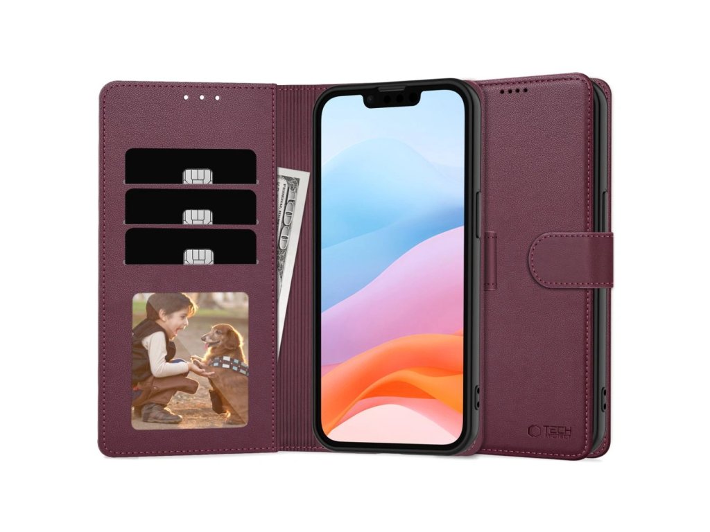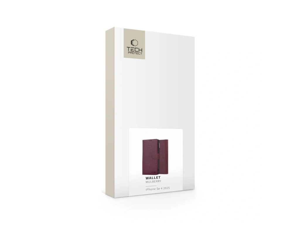 Pouzdro s klopou Tech‑Protect Wallet pro Apple iPhone 16e – mulberry