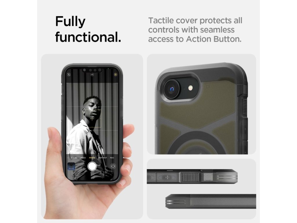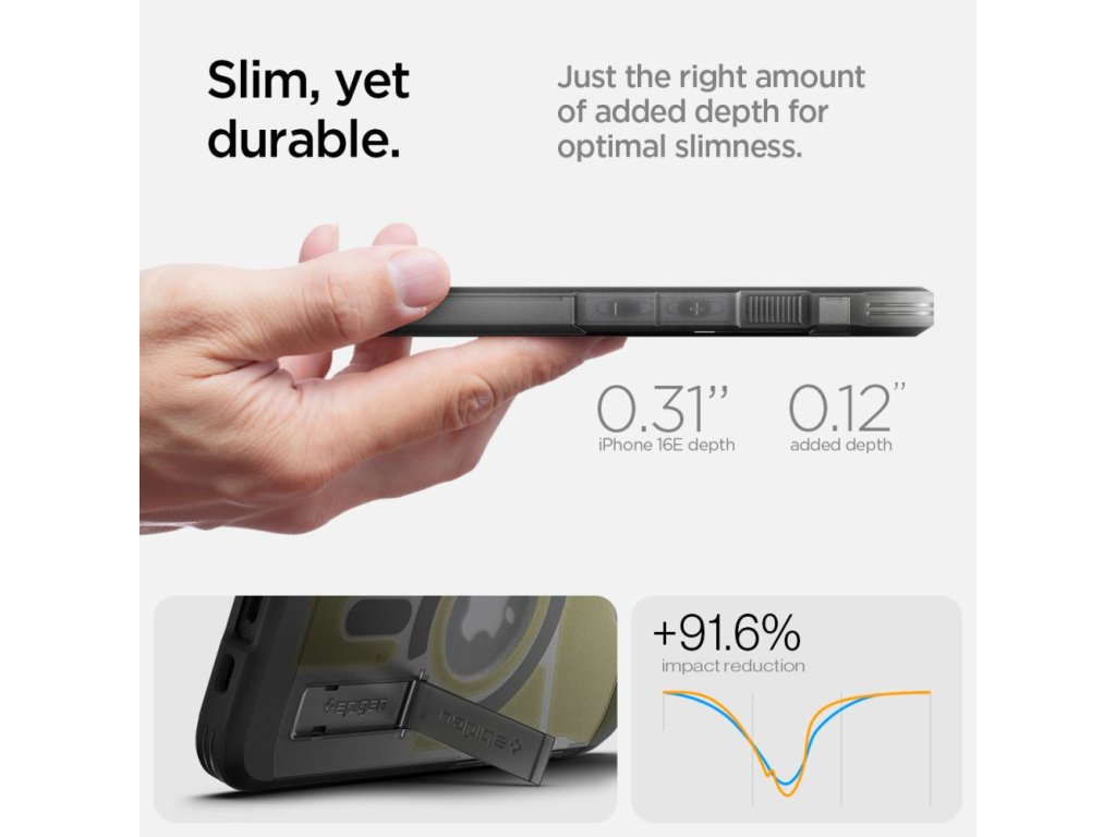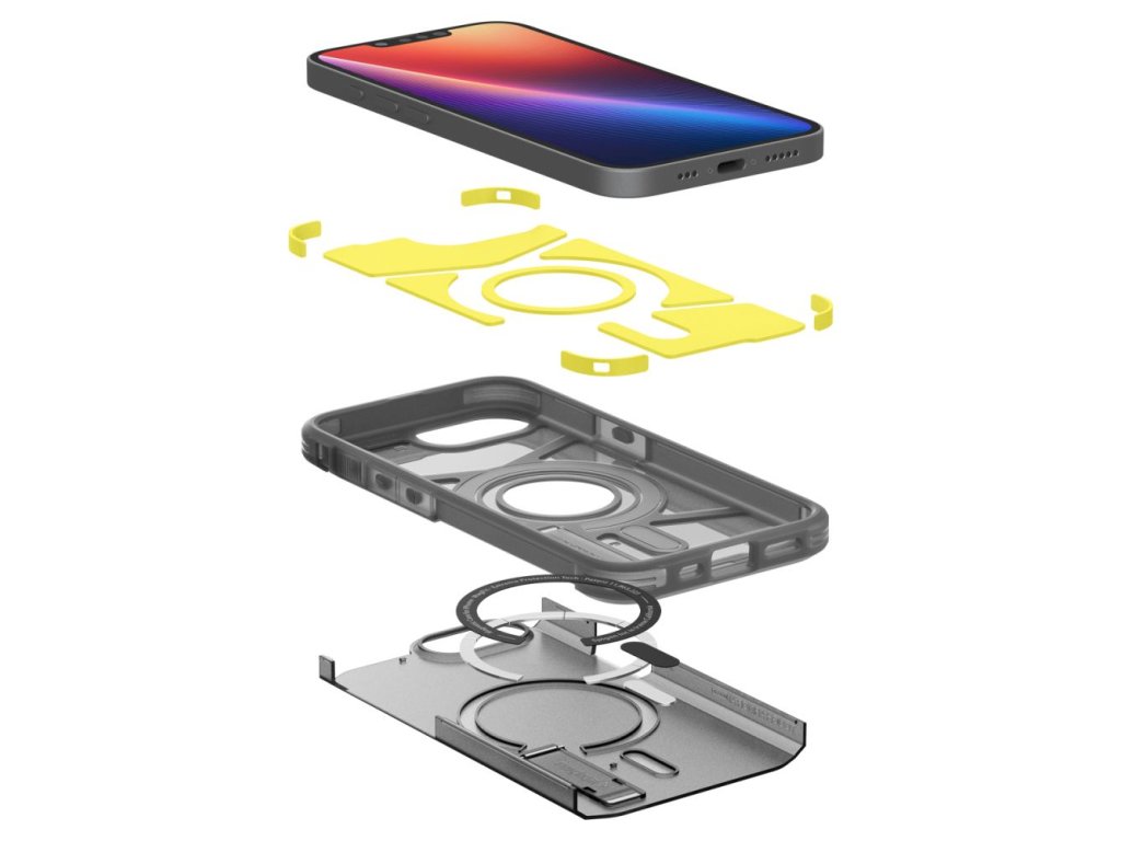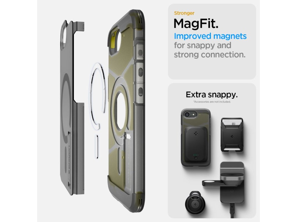 Spigen Tough Armor MagSafe je vylepšená verze osvědčeného ochranného pouzdra z řady Tough Armor. Je vybaveno magnetickým kroužkem kompatibilním s technologií MagSafe, která umožňuje rychlé bezdrátové nabíjení a snadné připojení příslušenství Apple.