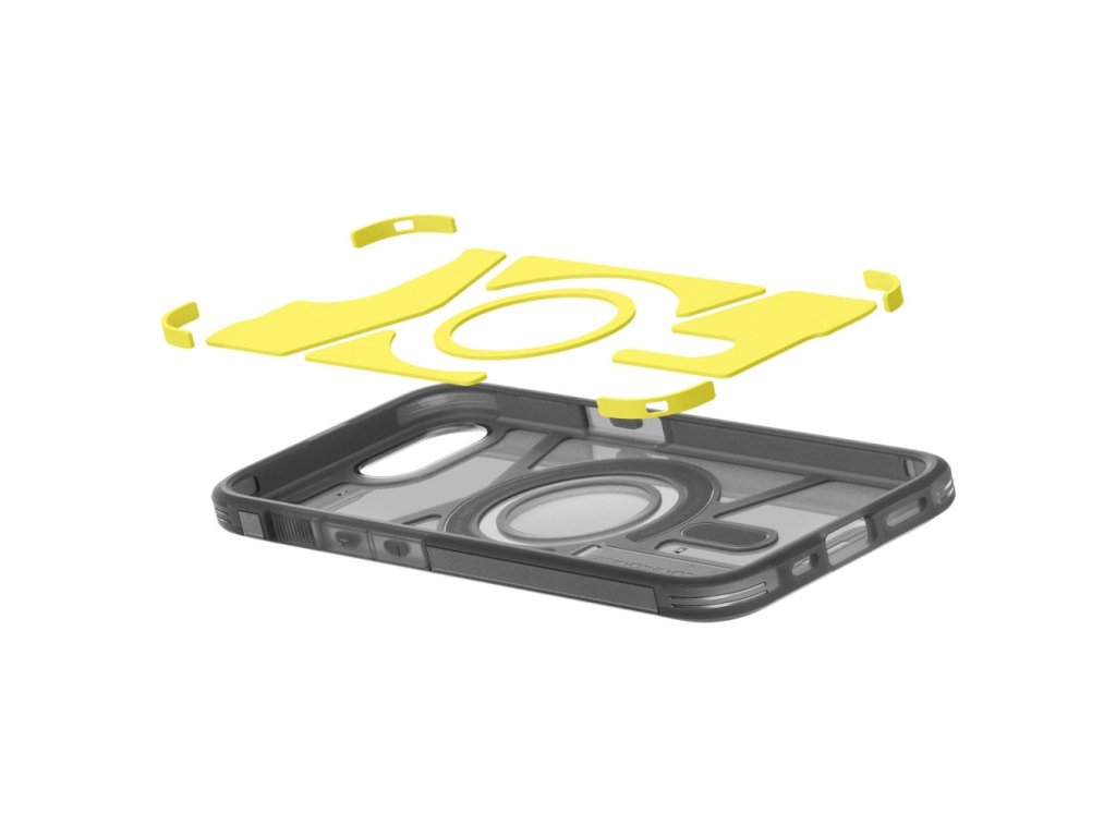 Pouzdro Spigen Tough Armor MagSafe pro iPhone 16e – průhledné šedé