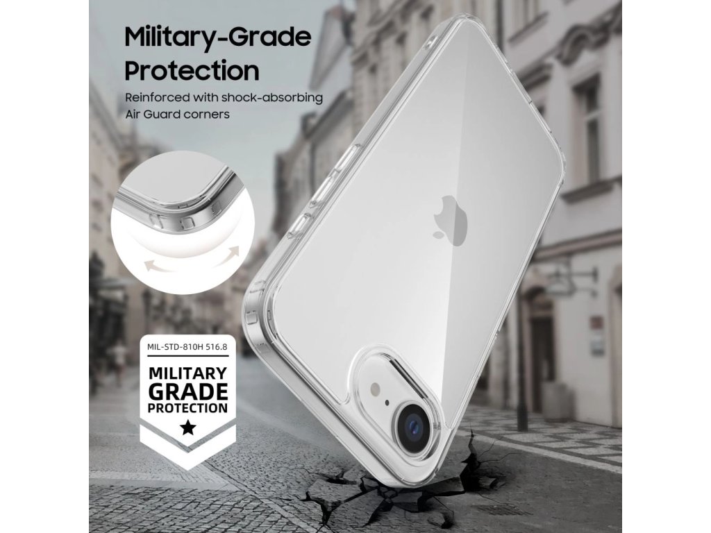 Toto hybridní, průhledné pouzdro kombinuje pevná záda z polykarbonátu a elastický TPU rám, aby chránilo telefon proti poškození a současně zachovalo jeho originální vzhled. Transparentní konstrukce se vzduchovými polštářky v rozích absorbuje nárazy a zvýšené okraje ochrání displej i fotoaparát.