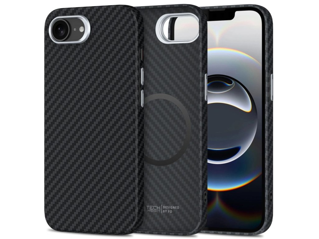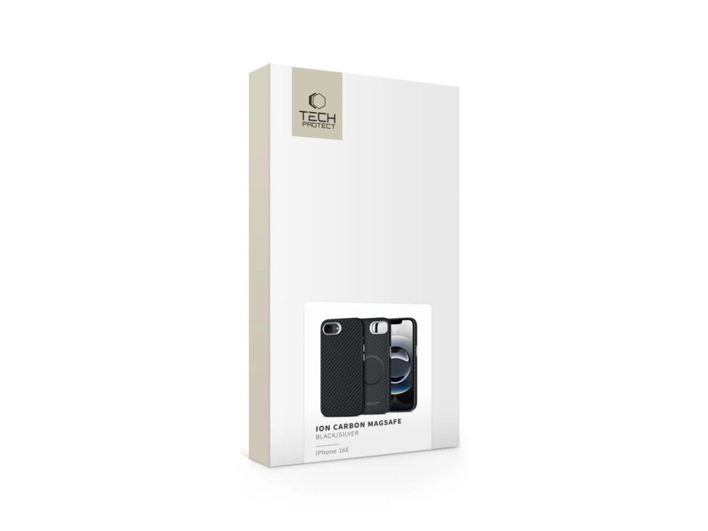 Pouzdro Tech‑Protect Ion Carbon MagSafe pro Apple iPhone 16e – Černá/stříbrná