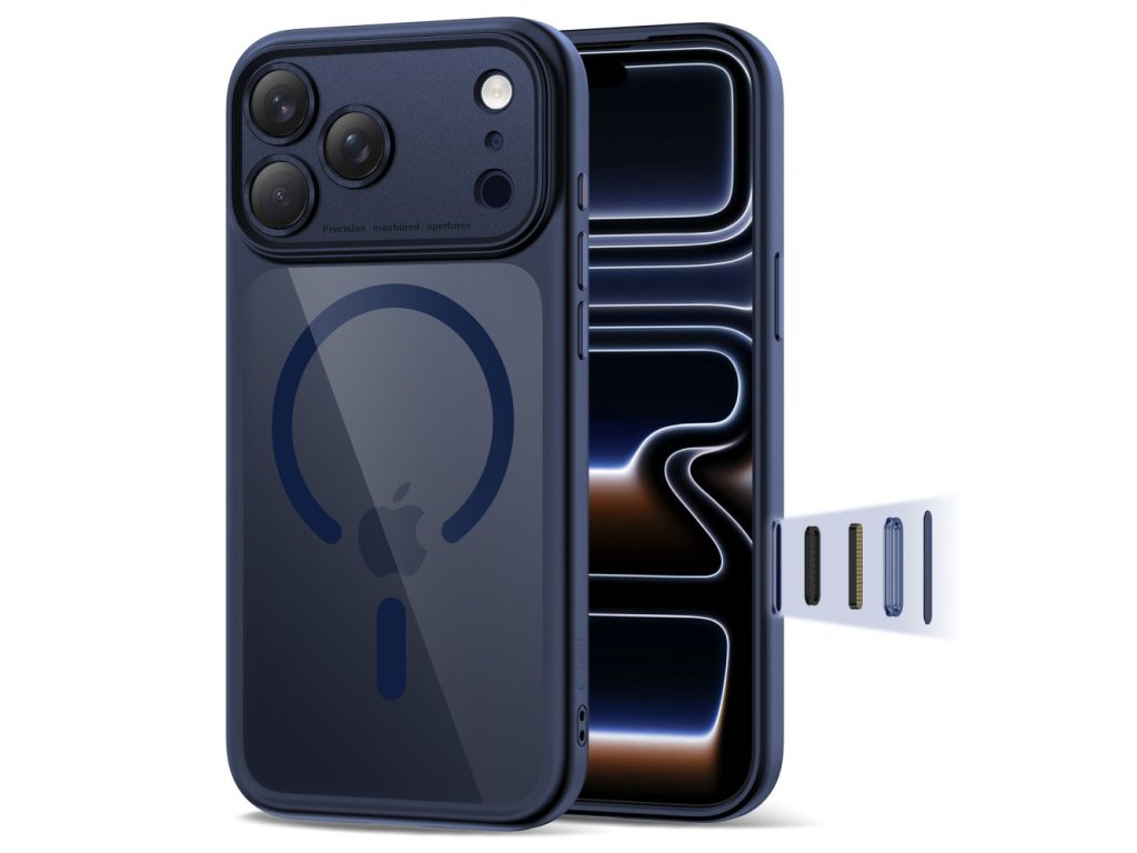 Pouzdro Tech-Protect MagPeak MagSafe CC pro iPhone 17 Pro – Deep Blue / Clear