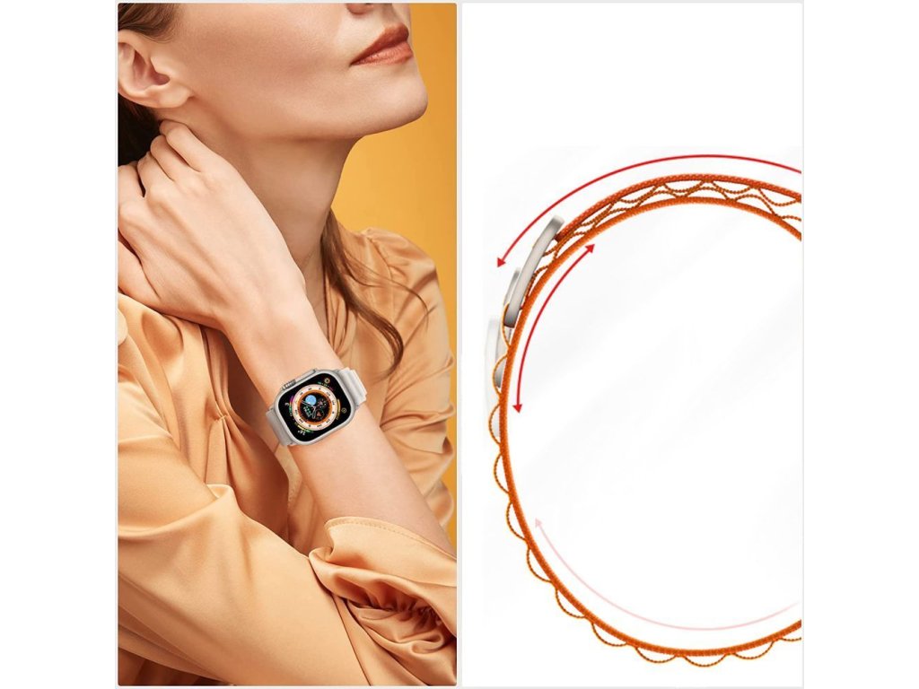 Řemínek je kompatibilní s modely Apple Watch (44 / 45 / 46 / 49 mm): Series 8 / 9 / 10 / 11, SE Series 1 / 2 / 3, Ultra Series 1 / 2 / 3
