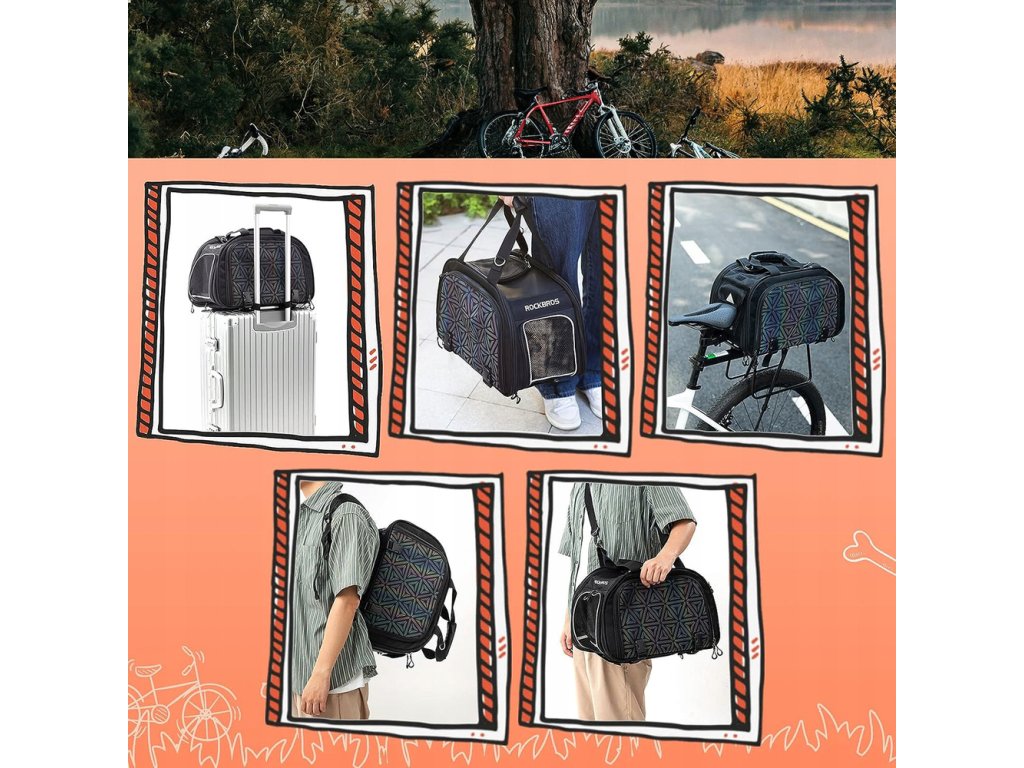 Taška Rockbros 30140028001 nabízí až pět způsobů přenášení: montáž na kole, nošení na zádech, na rameni a připevnění na kufr. To je ideální řešení pro aktivní majitele zvířat, kteří často mění způsob přepravy.