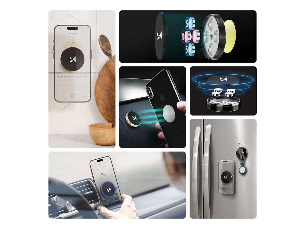 - Kompatibilita: každý telefon s nalepenou kovovou destičkou nebo vhodným pouzdrem