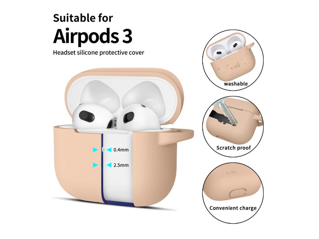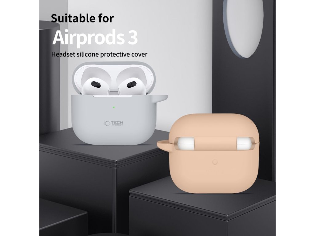 Silikonové pouzdro Tech-Protect Silicone Hook pro Apple AirPods 3 – Caffe Latte