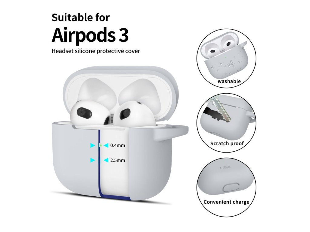 Silikonové pouzdro Tech-Protect Silicone Hook pro Apple AirPods 3 – Crayon Grey