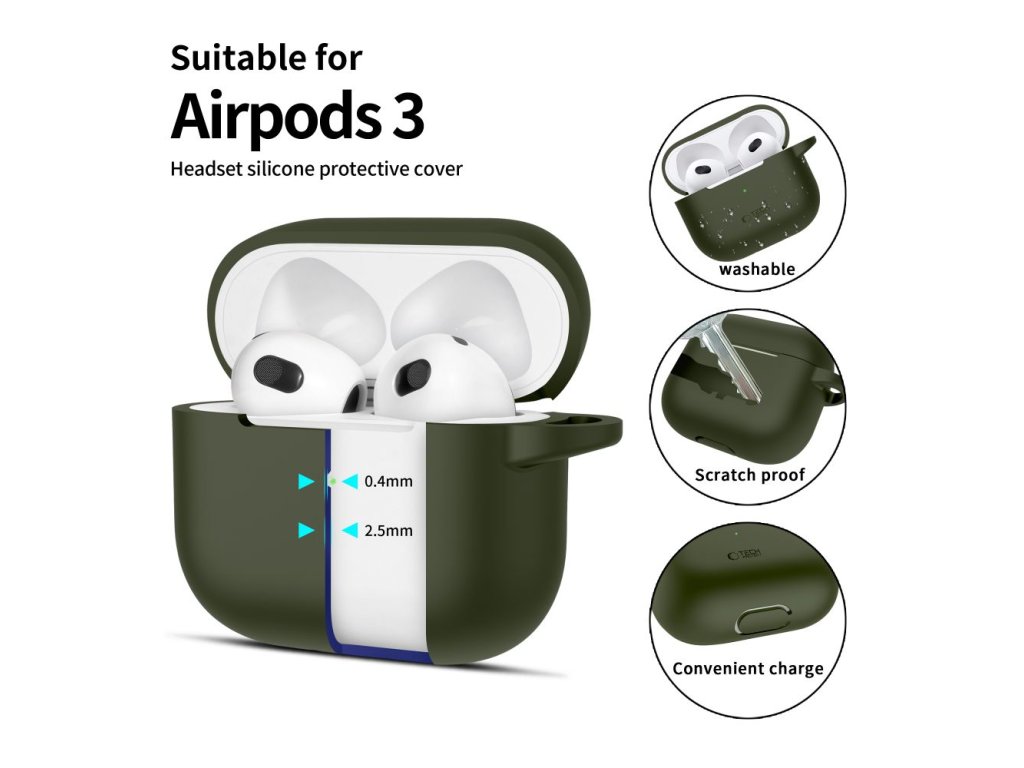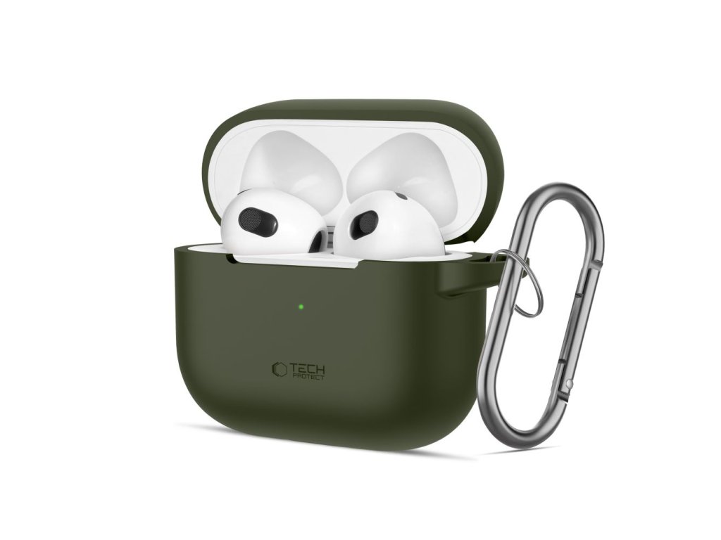 Silikonové pouzdro Tech-Protect Silicone Hook pro Apple AirPods 3 – Olive Green