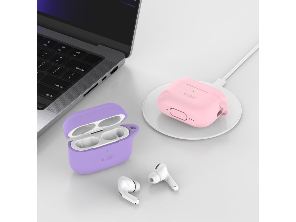 Silikonové pouzdro Tech-Protect Silicone Hook pro Apple AirPods Pro 1 / 2 – Dusty Pink
