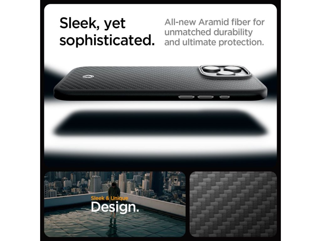 Spigen Enzo Aramid MagSafe je pouzdro, které spojuje nejmodernější technologie a materiály a poskytuje maximální ochranu pro váš smartphone bez kompromisů v designu. Je vyrobeno z pokročilého aramidového vlákna, které je známé svou mimořádnou odolností. Precizní hliníkové zakončení dodává pouzdru nejen jedinečný vzhled, ale také zvýšenou ochranu proti nárazům a poškození.