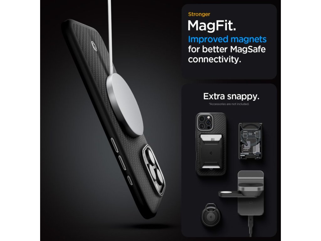 Pouzdro je vybaveno magnetickým kroužkem kompatibilním s MagSafe technologií. Magnet zajišťuje maximální účinnost bezdrátového nabíjení a umožňuje rychlé a snadné připojení ke všem MagSafe doplňkům.