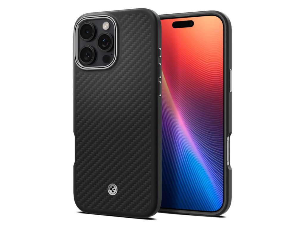 Spigen Enzo Aramid Mag pouzdro s MagSafe pro iPhone 16 Pro – černé a stříbrné