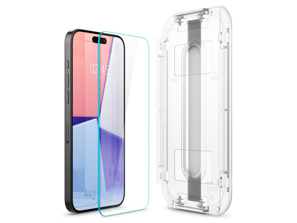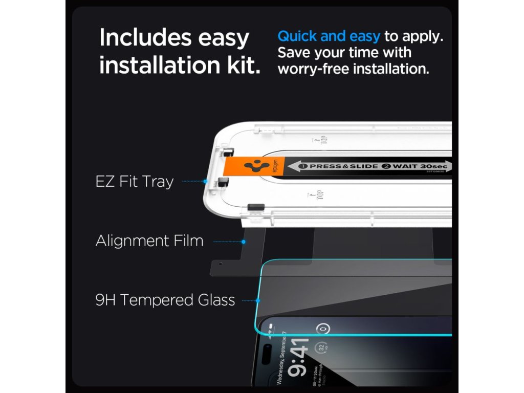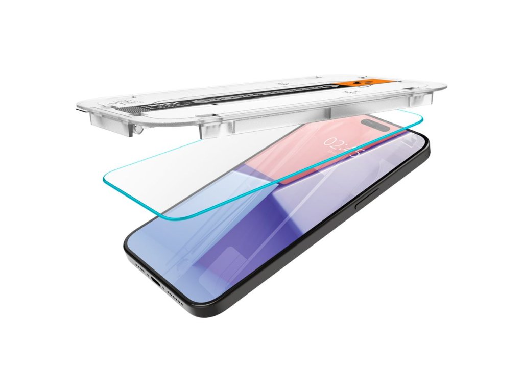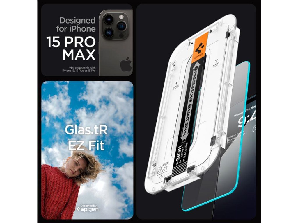 SPIGEN EZ Fit Ochranné sklo 2.5D FULL-COVER 0.3mm pro iPhone 15 Pro Max, montážní rámeček, 2ks