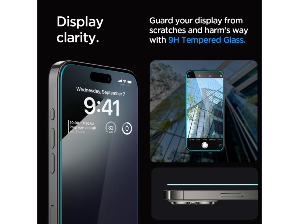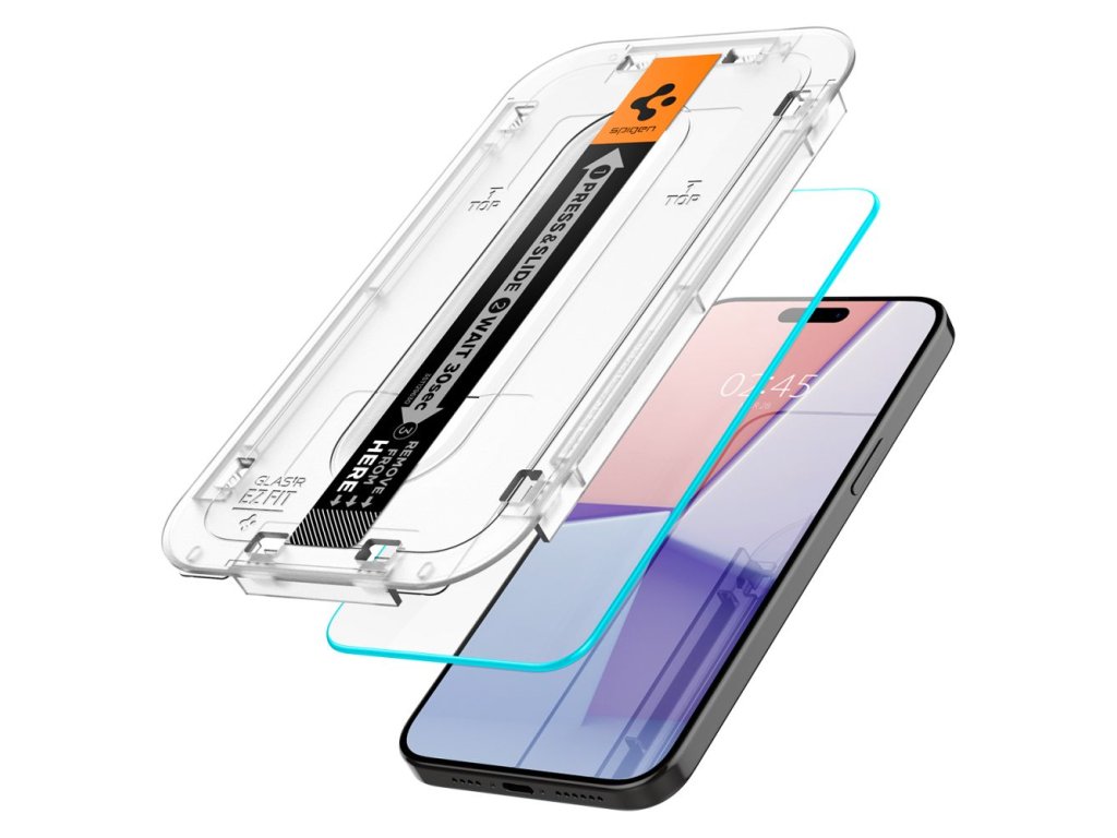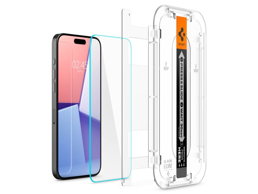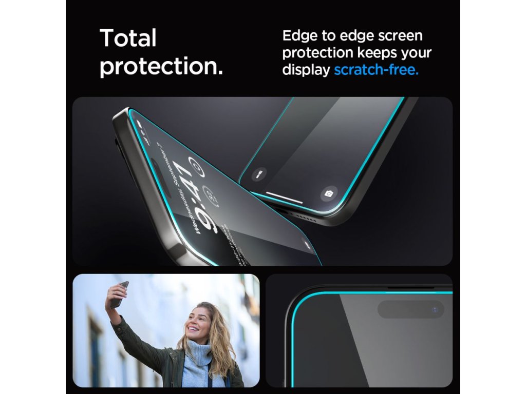 SPIGEN EZ Fit Ochranné sklo 2.5D FULL-COVER 0.3mm pro iPhone 15 Pro Max, montážní rámeček, 2ks