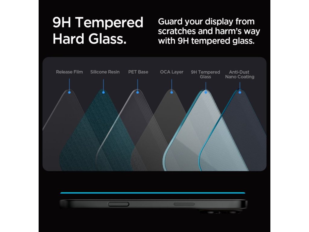 Tvrzené sklo o tloušťce 0,3 mm má povrchovou tvrdost 9H, což je téměř maximální výsledek stupně odolnosti proti poškrábání, kterého lze dosáhnout. Dodatečná oleofobní vrstva zabraňuje nadměrnému zanechávání otisků prstů nebo jiných nečistot a chrání před dalším poškrábáním. Minimalistický design s přesnými výřezy a křišťálová průhlednost zajišťují úžasné ponoření se do zařízení, takže snadno zapomeneme, že na něm máme sklo, které nám poskytuje dodatečnou ochranu. Vzhledem k různému frézování okrajů displejů se po instalaci ochranné skla na obrazovku může kolem obrazovky vytvořit jemná vzduchová svatozář. Jedná se o přirozenou situaci a závisí na samotné obrazovce. Obvykle zmizí během 48 hodin.