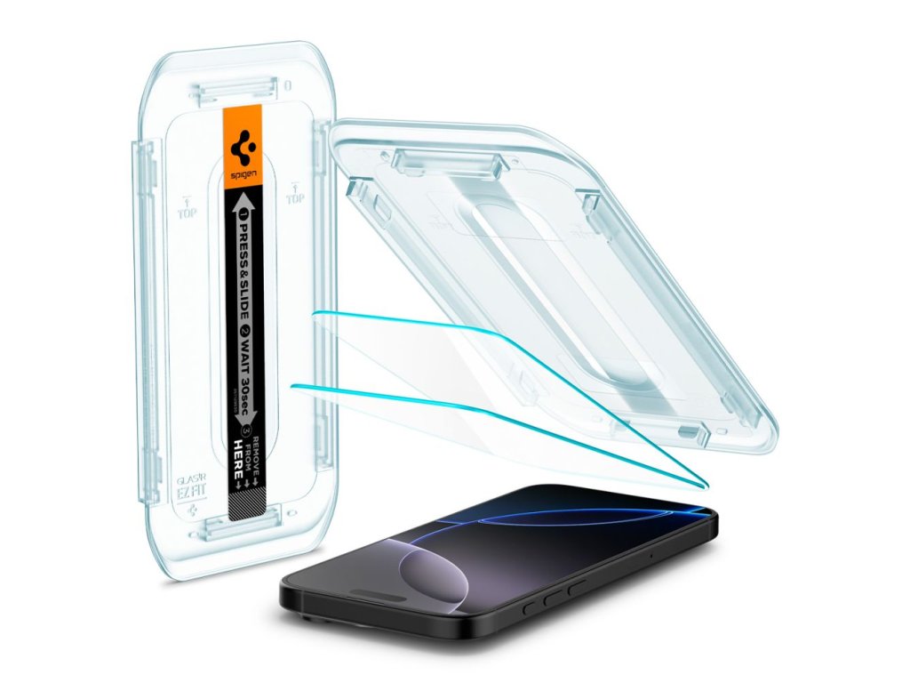 SPIGEN EZ Fit Ochranné sklo 2.5D FULL-COVER 0.3mm pro iPhone 16 Pro, montážní rámeček, 2ks