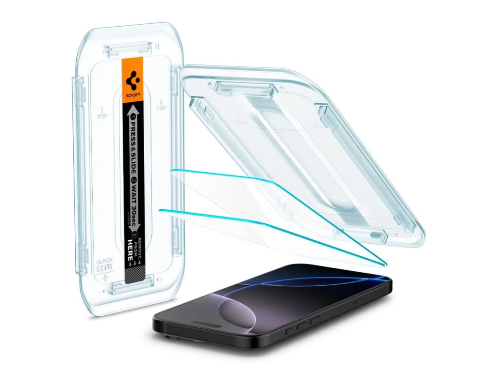 SPIGEN EZ Fit Ochranné sklo 2.5D FULL-COVER 0.3mm pro iPhone 16 Pro Max, montážní rámeček, 2ks
