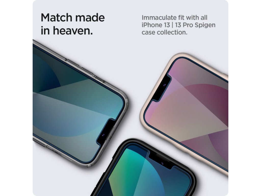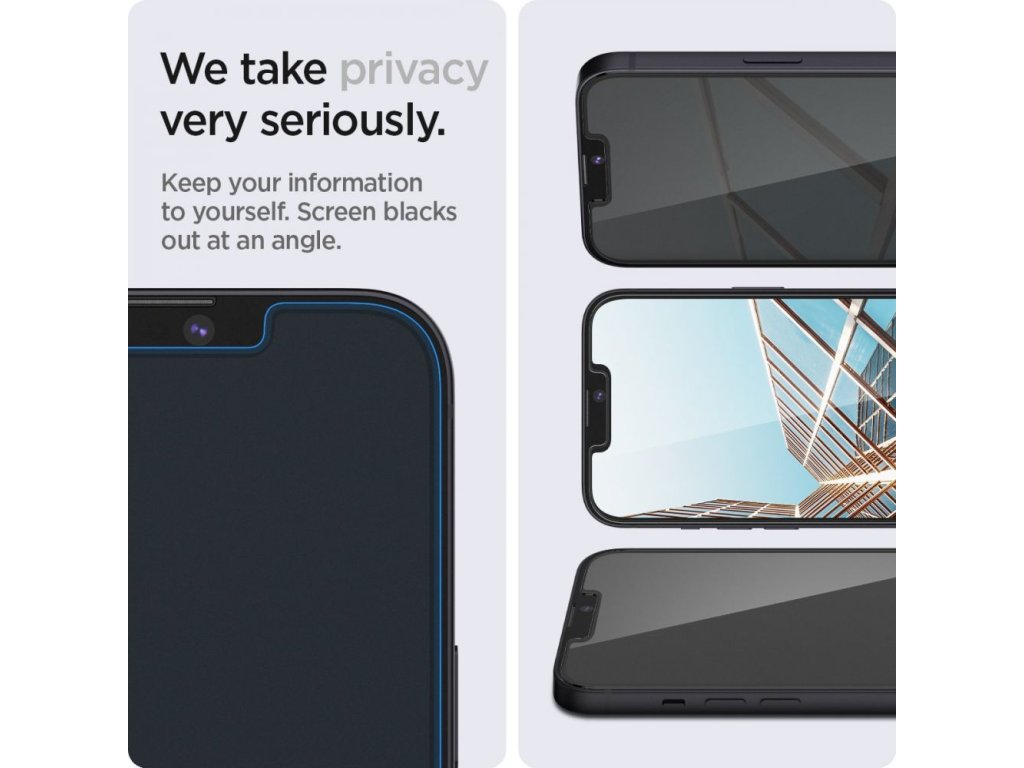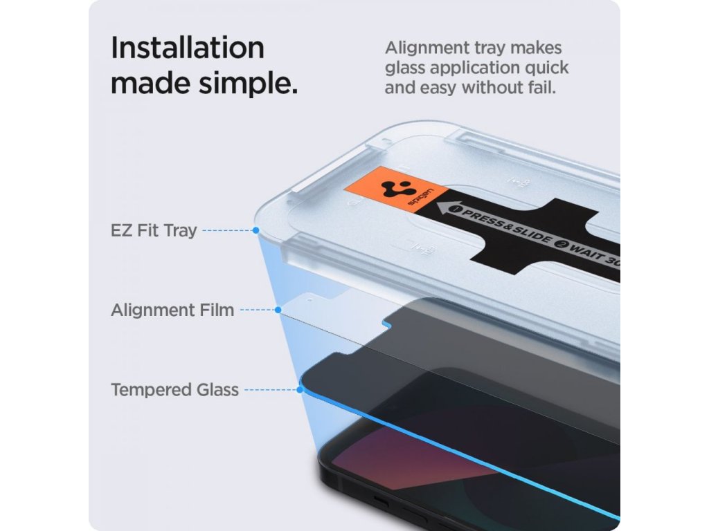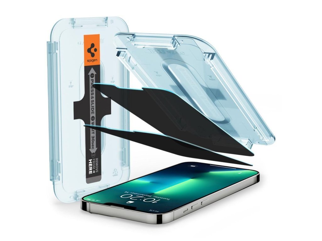 SPIGEN EZ FIT Ochranné sklo 2.5D STANDARD 0.3mm pro iPhone 13/13 Pro/14, montážní rámeček, Privacy, 2ks