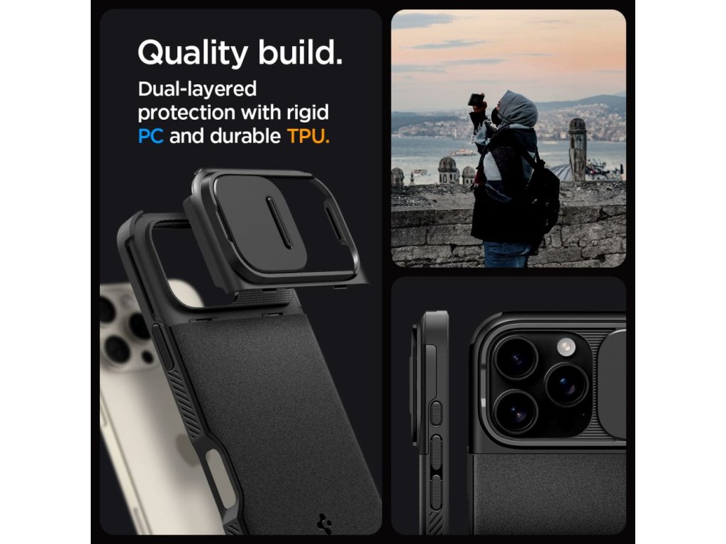 Hybridní pouzdro Spigen Optik Armor poskytuje dokonalou ochranu vašeho zařízení. Precizně zpracované pouzdro kombinuje měkký a pružný TPU rám s praktickým posuvným krytem z odolného polykarbonátu. Kryt chrání čočku fotoaparátu před poškrábáním a jiným poškozením během každodenního používání.