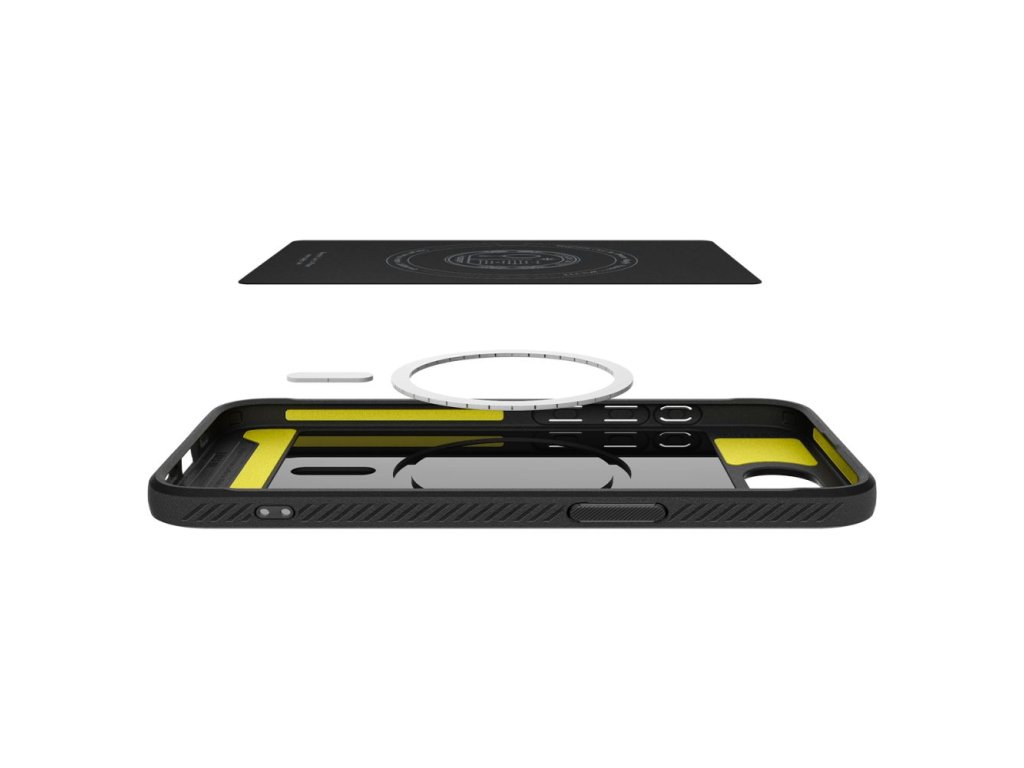 Spigen Rugged Armor MagSafe zaujme elegantním vzhledem s karbonovými prvky, které pouzdru dodávají moderní a dynamický charakter.