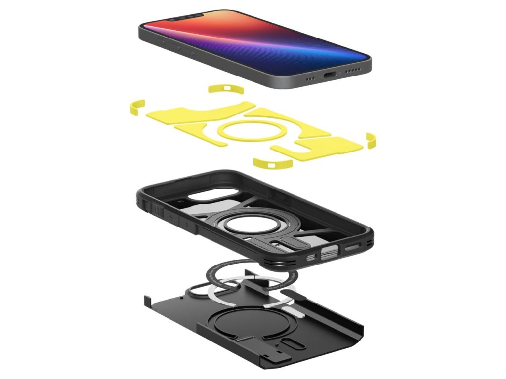 Spigen Tough Armor MagSafe pouzdro pro iPhone 16e se stojánkem – černé