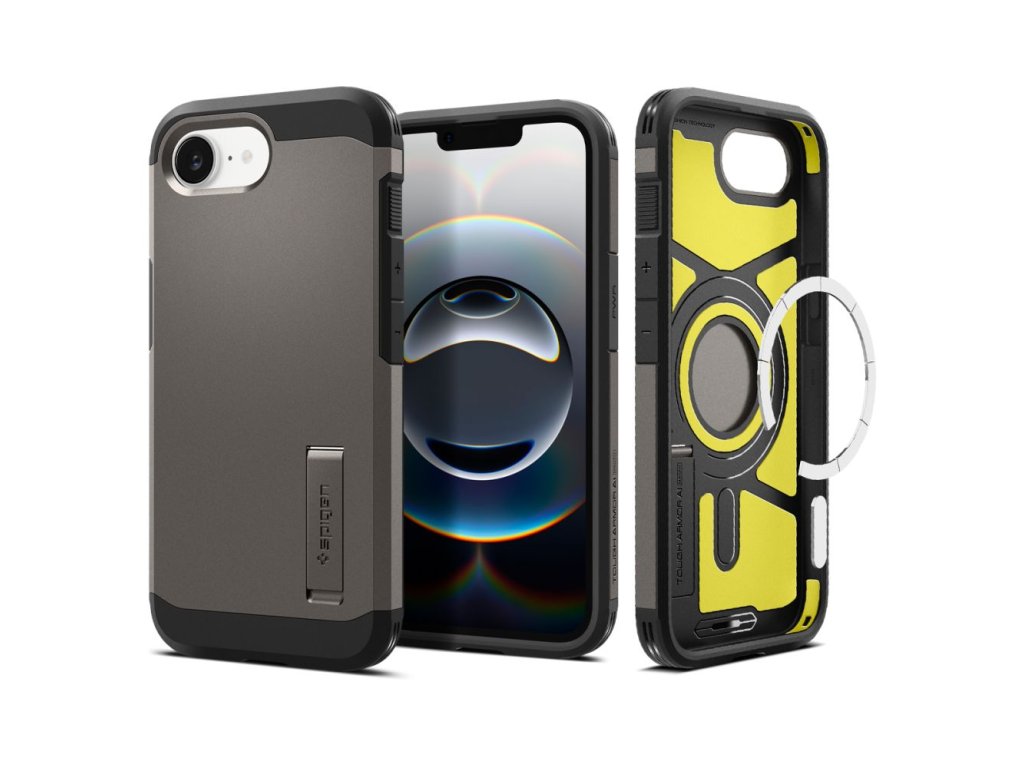 Spigen Tough Armor MagSafe pouzdro pro iPhone 16e se stojánkem – šedé