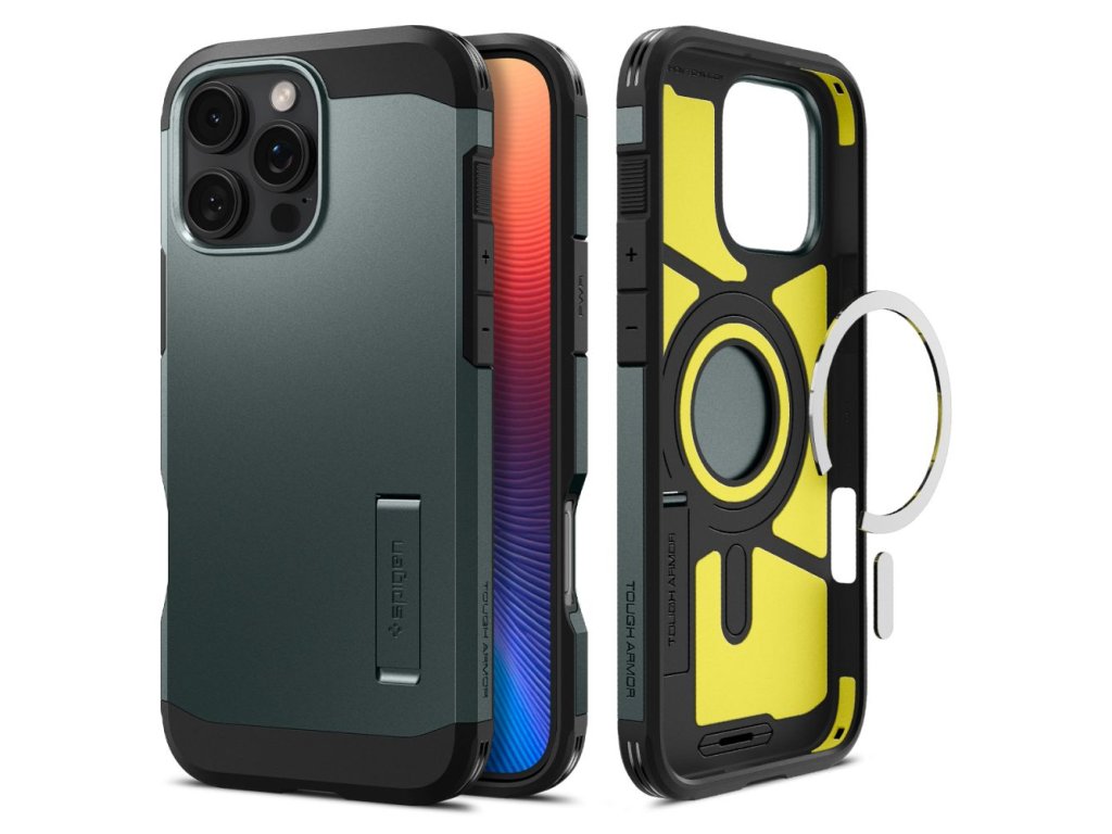 Spigen Tough Armor MagSafe pouzdro se stojánkem pro iPhone 16 Pro – zelené