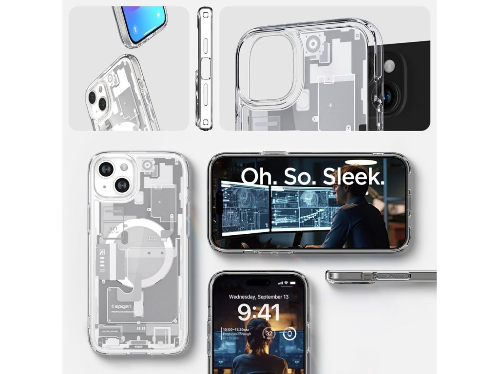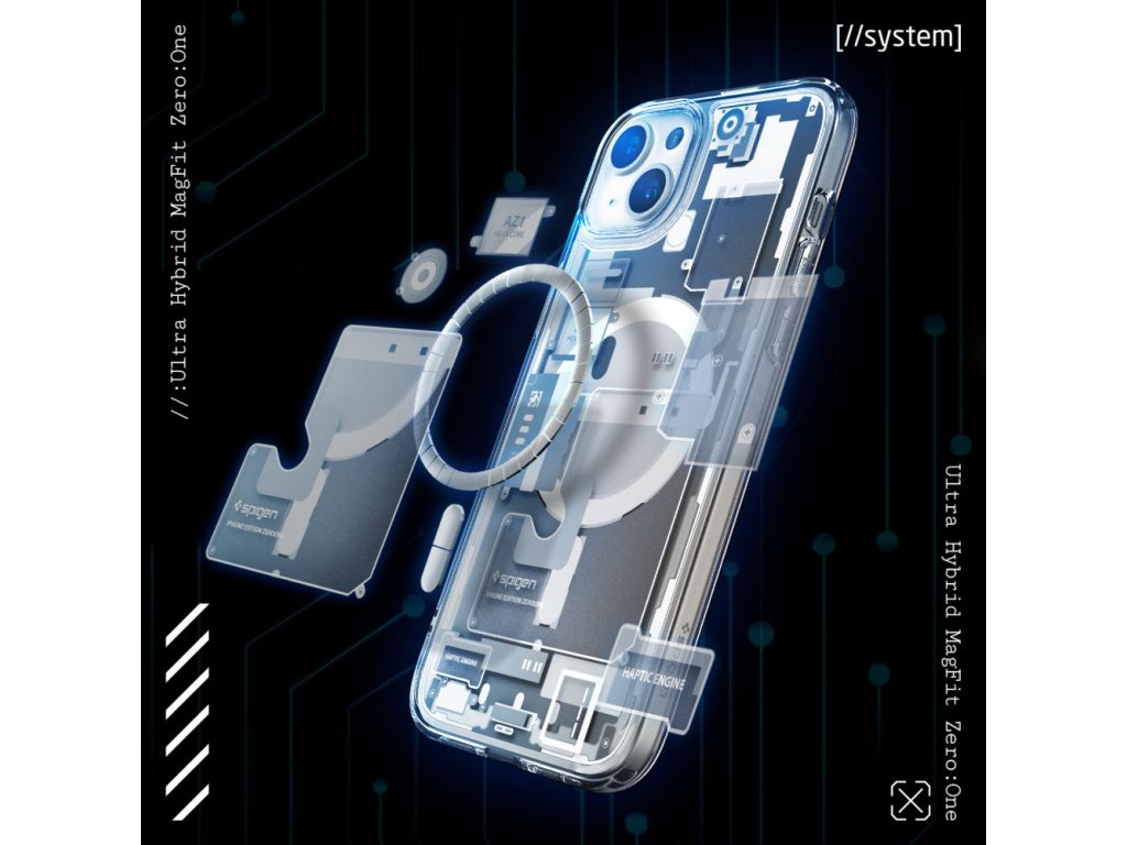 Spigen Ultra Hybrid Mag pouzdro s MagSafe pro iPhone 15 Plus - bílé (Zero One design)