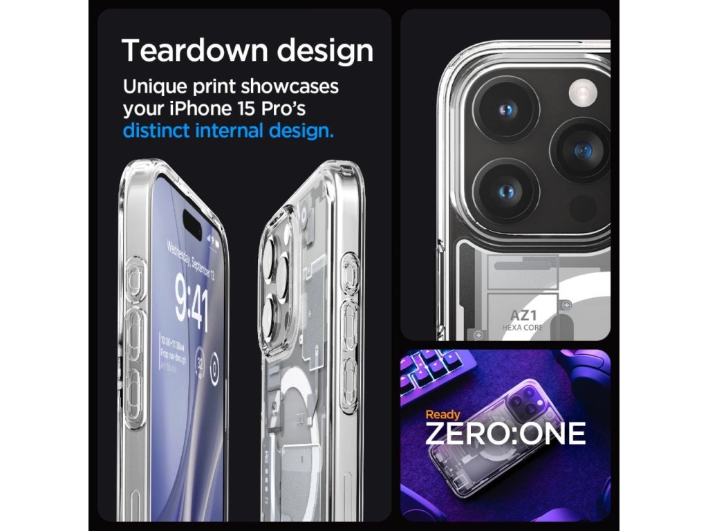Spigen Ultra Hybrid Mag pouzdro s MagSafe pro iPhone 15 Pro - bílé (Zero One design)