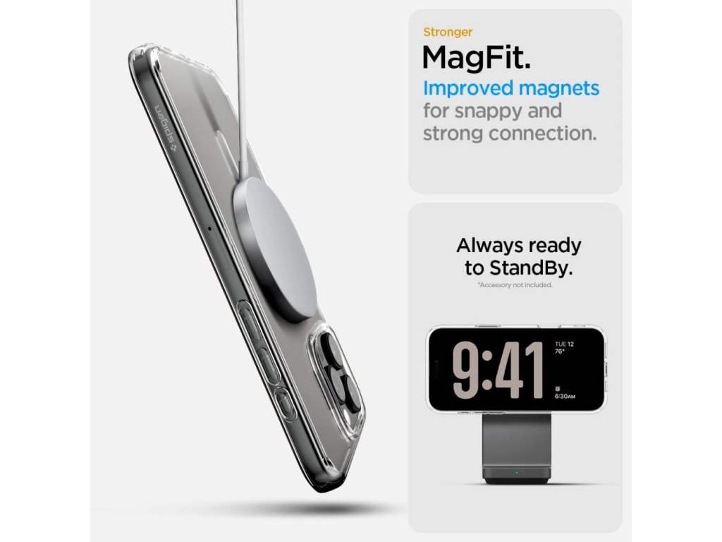 Spigen Ultra Hybrid ”T” Magsafe je pouzdro, které spojuje ty nejlepší vlastnosti ochrany a estetiky, čímž poskytuje vašemu smartphonu bezpečí i stylový vzhled. Díky unikátní hybridní konstrukci (TPU + PC), která kombinuje odolný rám s průhledným panelem, si váš telefon zachovává svůj originální design a zároveň je účinně chráněn před poškozením. Zesílené rohy s technologií Air Cushion efektivně absorbují nárazy a poskytují dodatečnou ochranu při pádech.