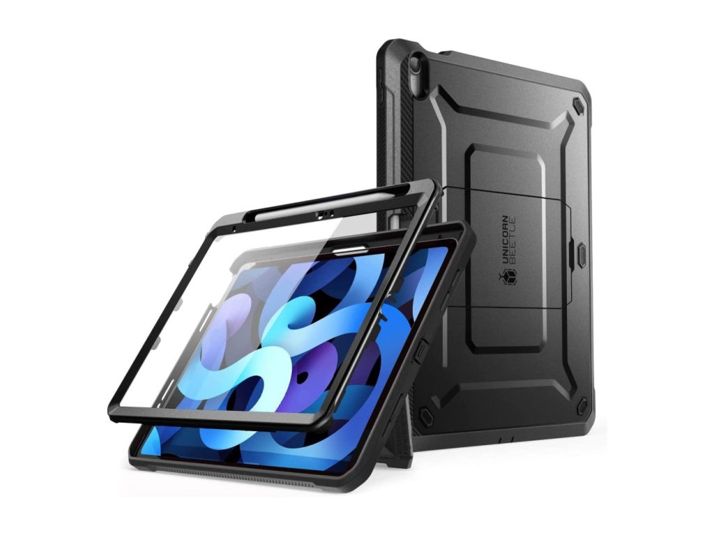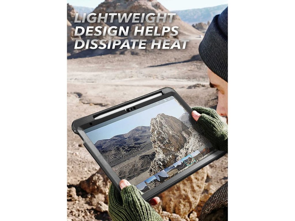 SUPCASE Unicorn Beetle Pro je dvoudílný pancíř, který úžasně tlumí nárazy a chrání váš iPad opravdu na maximum. Pouzdro je vyrobeno z kombinace TPU a polykarbonátu, takže se skvěle hodí do všech extrémních situací. Unicorn Beetle Pro má polykarbonátový přední rám, ve kterém je integrováno polykarbonátové sklo s tvrdostí 5H, taková ochrana dokonale odděluje displej od rovných povrchů, a vaše zařízení se tak může cítit v bezpečí.