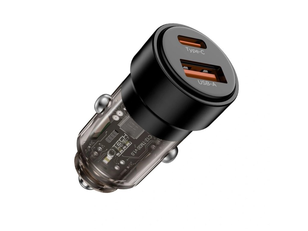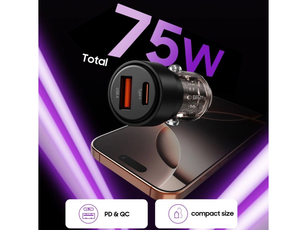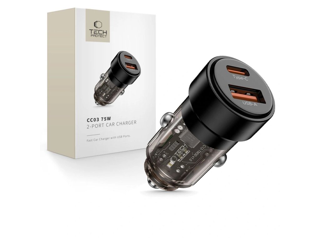 Tech-Protect CC03 2-portová autonabíječka USB-A / USB-C PD 75W, černá