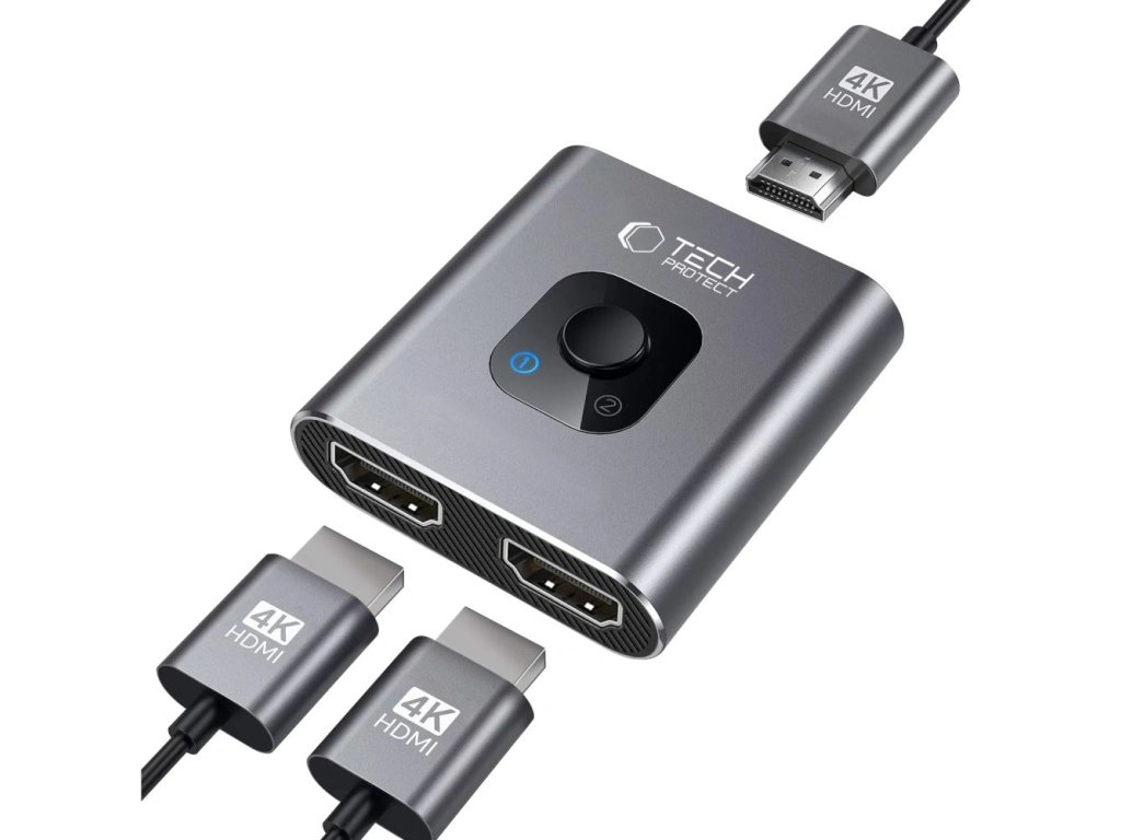 Tech-Protect HB07 – HDMI HUB 2v1, 4K/60Hz, šedý