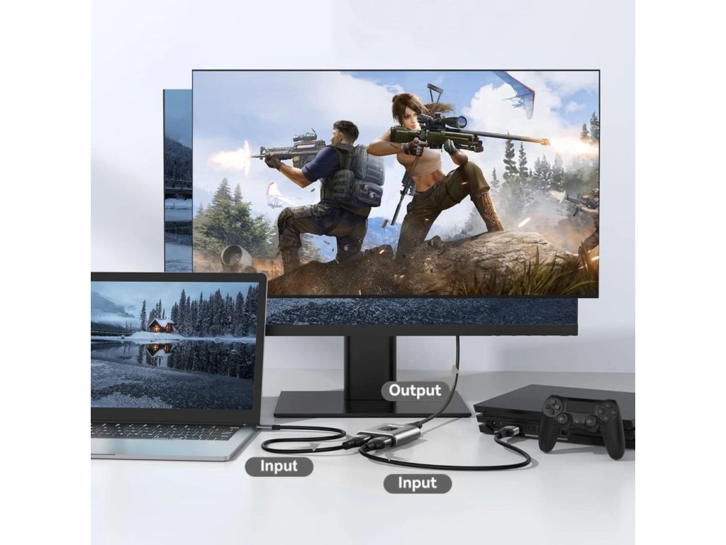 Adaptér je vybaven jedním HDMI vstupem a dvěma HDMI výstupy, přičemž oba podporují rozlišení až 4K při obnovovací frekvenci 60 Hz. Díky tomu si můžete vychutnat ostrý a plynulý obraz ve vysokém rozlišení na dvou obrazovkách zároveň.