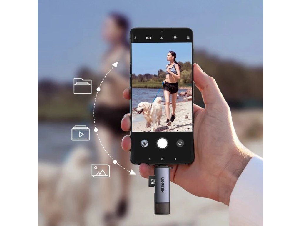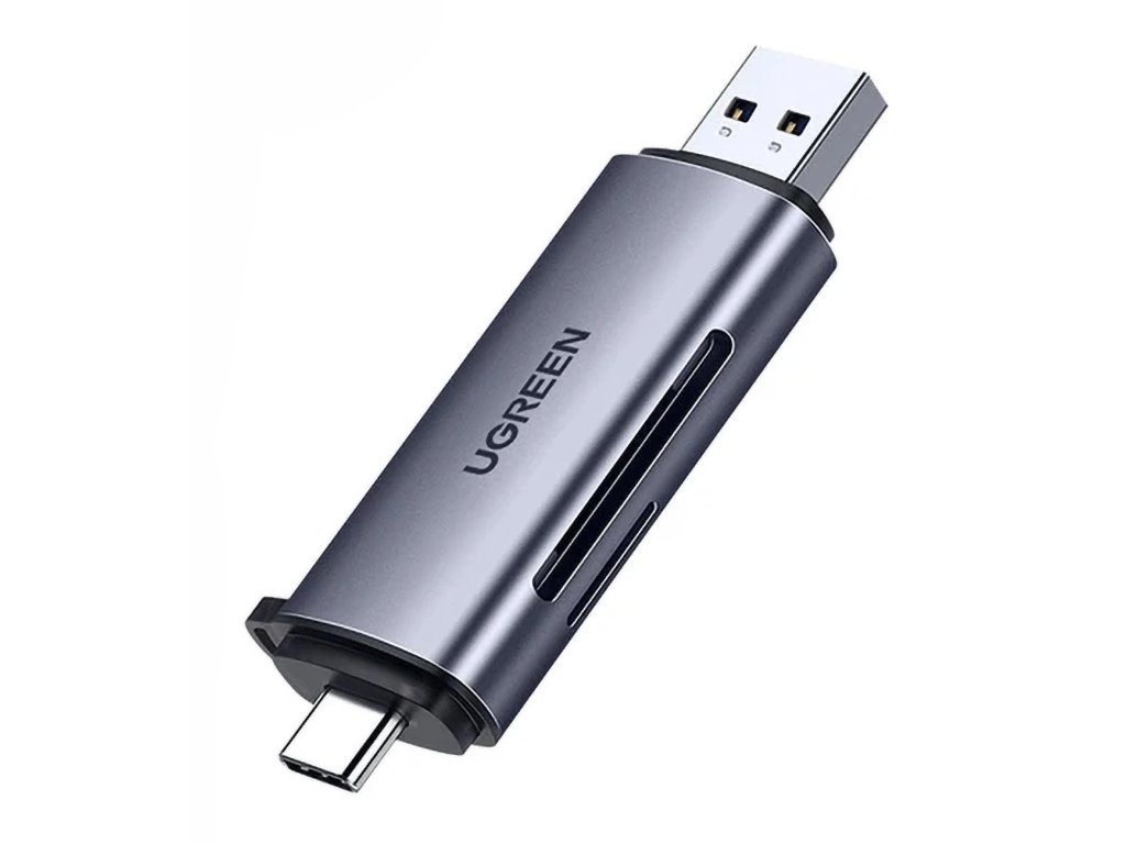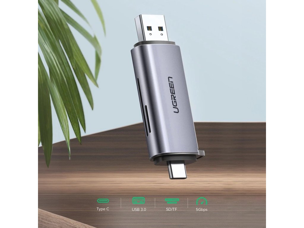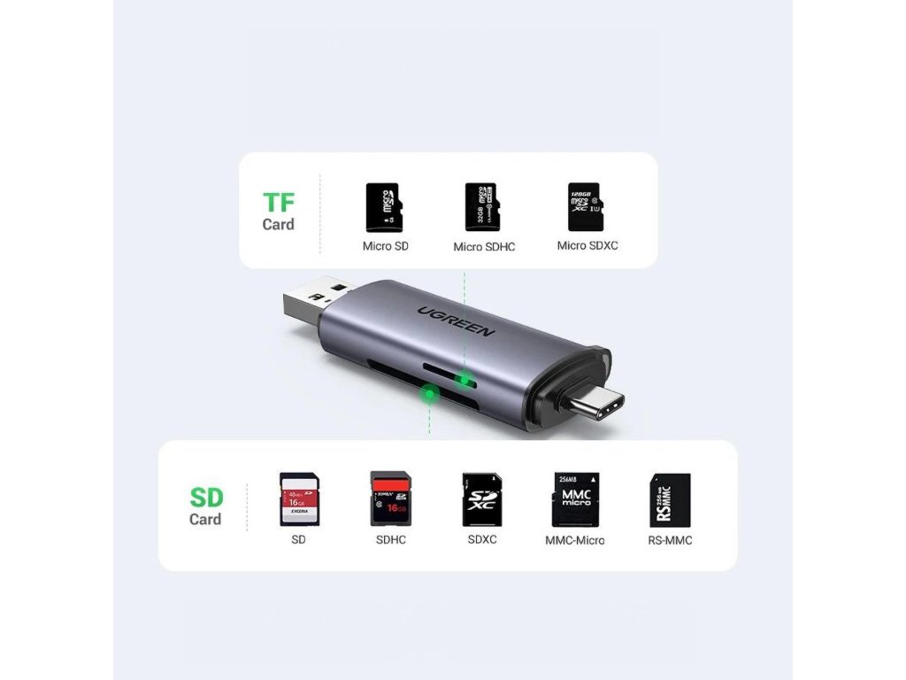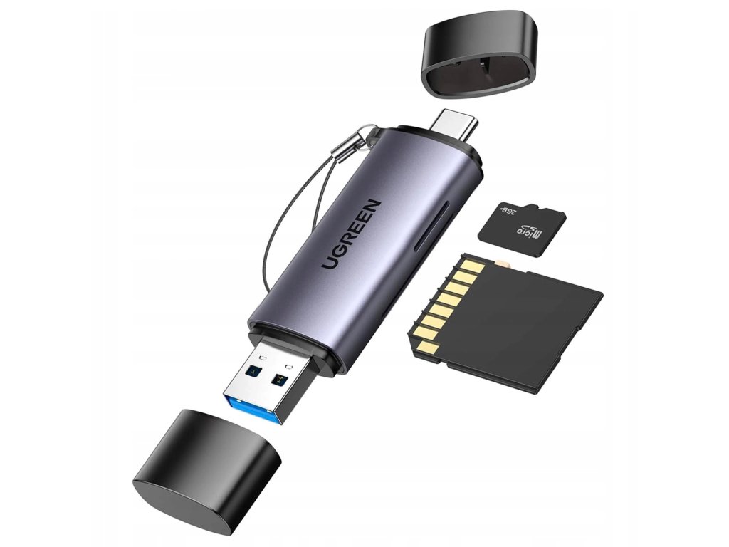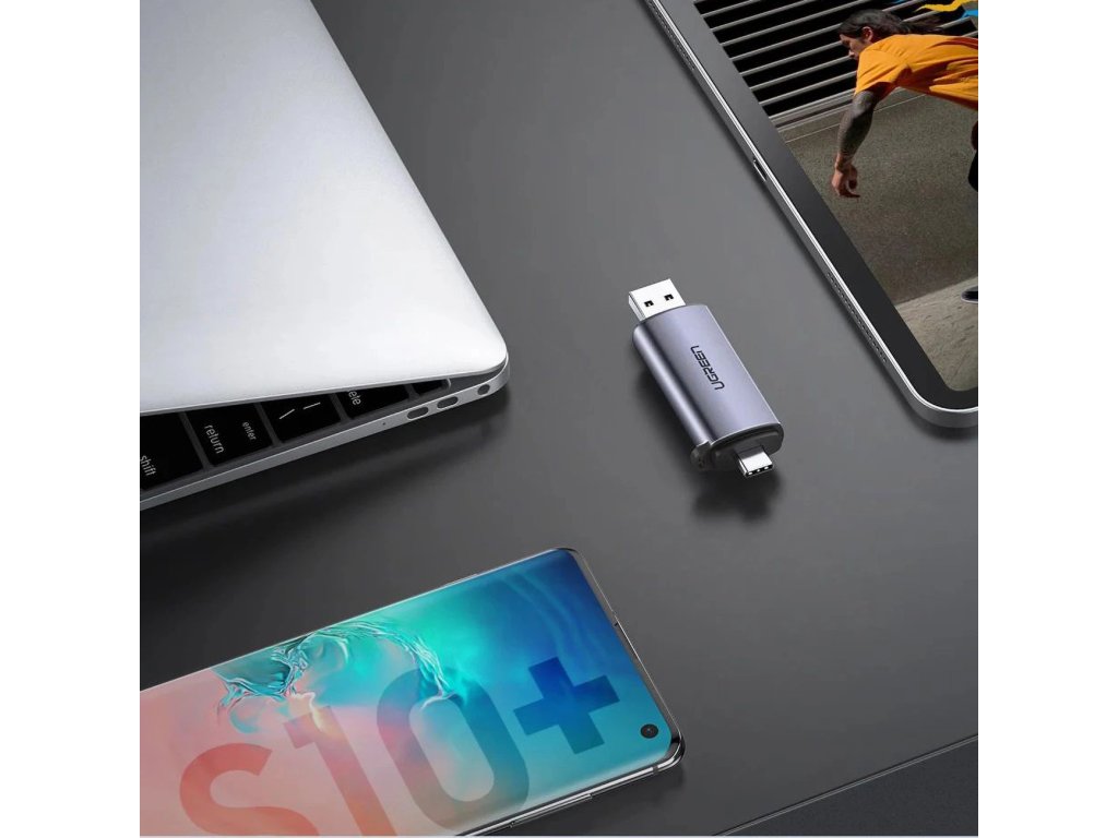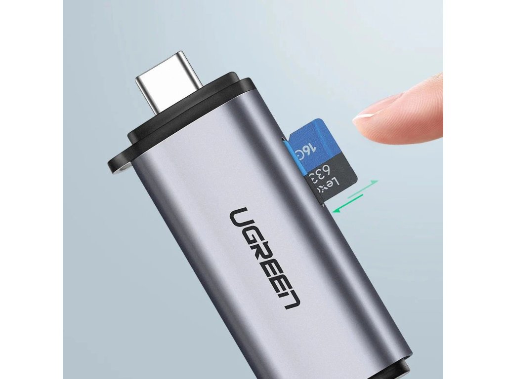 UGREEN 50706 Čtečka paměťových karet SD/MicroSD s USB/USB-C konektorem, vesmírně šedá