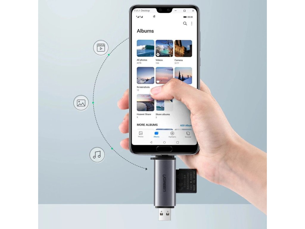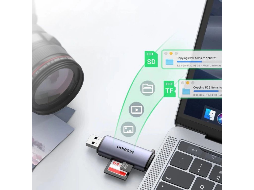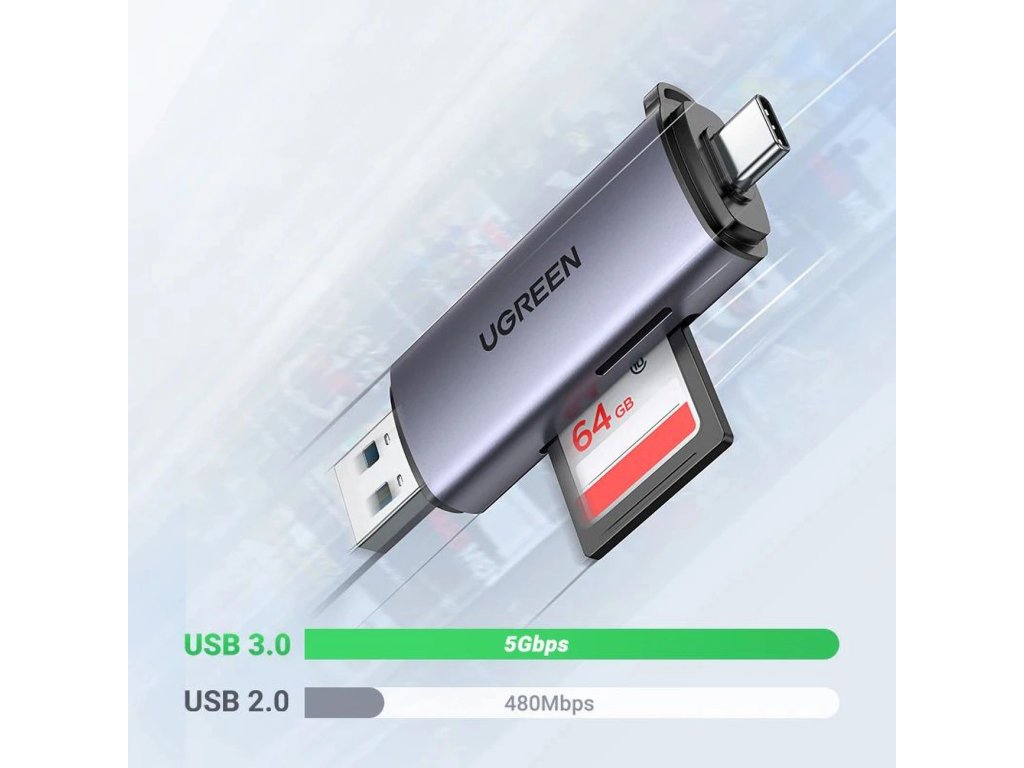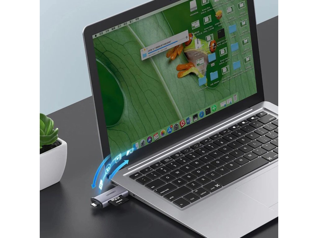Kompaktní čtečka karet Ugreen vám zajistí spolehlivé načtení digitálních karet SD a micro SD. Je vyrobena ve standardu USB 3.0 (3.1 Gen 1) a umožňuje rychlý přenos souborů rychlostí až 5 Gb/s.