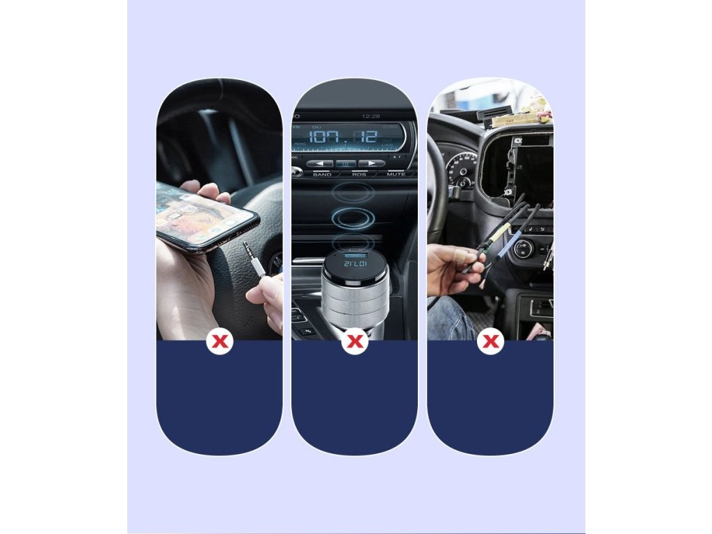 Jedná se o vysoce kvalitní způsob, jak poslouchat svou oblíbenou hudbu v autě bez nutnosti připojovat telefon k rádiu pomocí kabelu. Snadno se připojuje k USB a AUX zásuvkám v autě a zajišťuje, že cesta proběhne s dobrou hudbou na pozadí.
