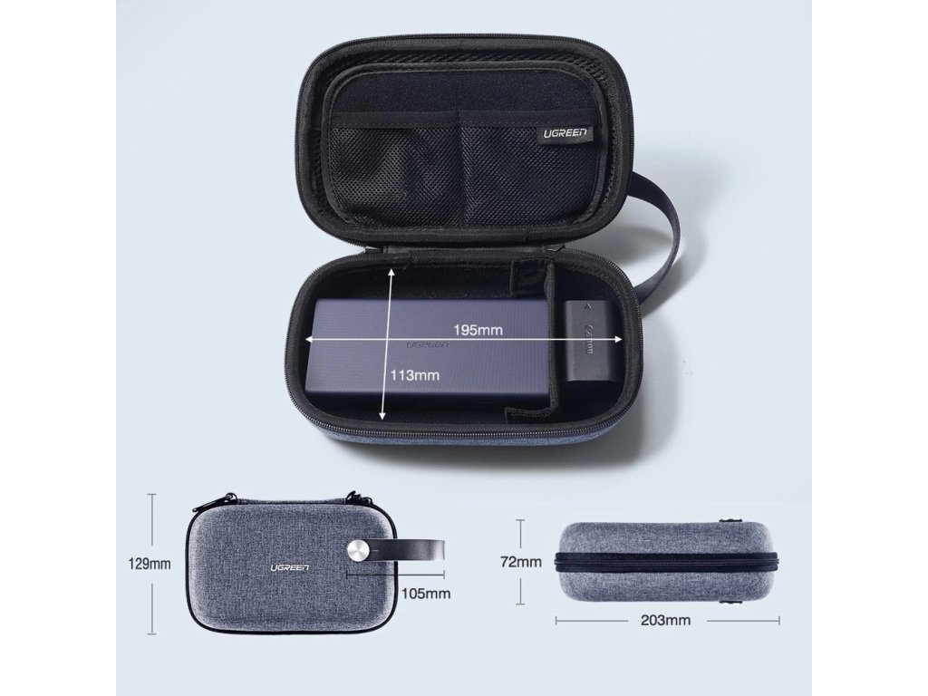 Kvalitní pouzdro pro cestování s elektronikou bez obav. Ugreen Travel Storage Bag je určeno především pro uložení 2,5'' HDD nebo SDD, podobně velkých powerbank, mobilních telefonů apod. Můžete do něj také umístit drobné elektronické příslušenství, jako jsou kabely a nabíječky k telefonům, paměťové karty apod. Kryt pouzdra je vyztužený EVA pěnou a odolný proti nárazům a stříkající vodě. Můžete v něm bezpečně přepravovat svůj externí pevný disk bez obav z jeho poškození na cestách.