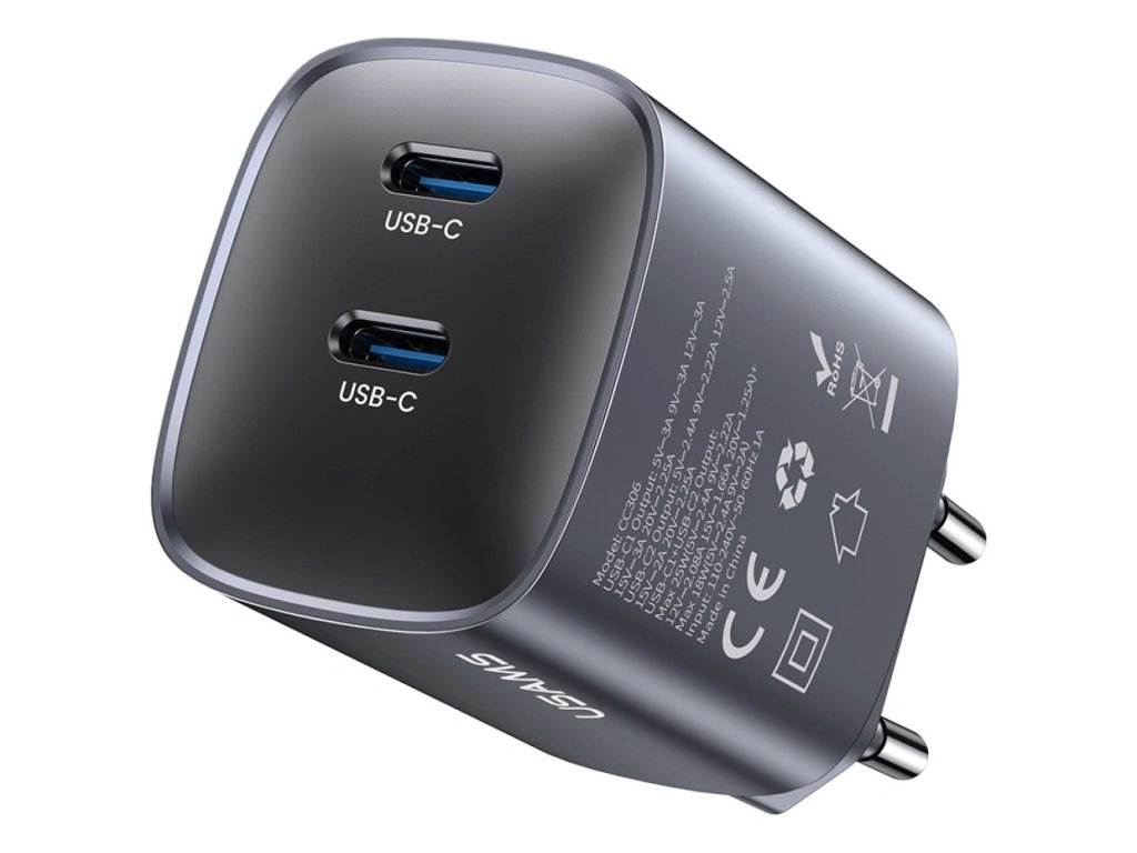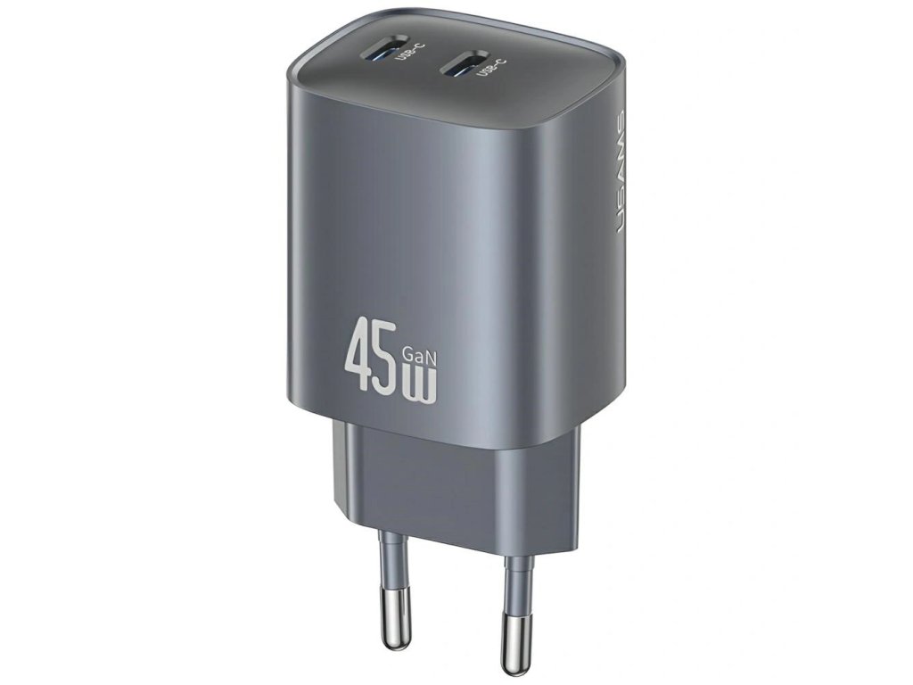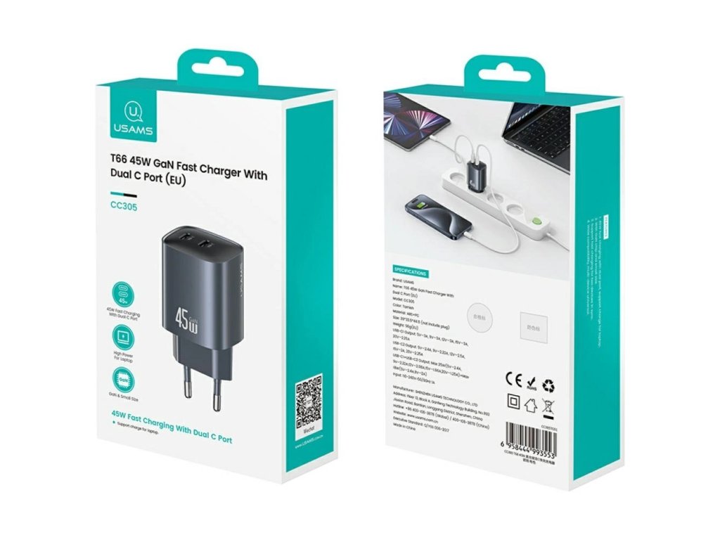 USAMS CC305 T66 – 45W GaN síťová nabíječka, 2× USB-C, matná černá