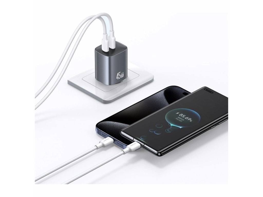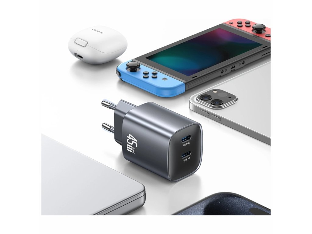USAMS CC305 T66 – síťová nabíječka 45W GaN, 2× USB-C